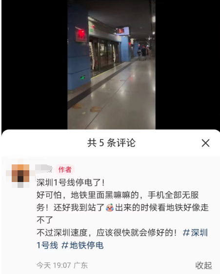 深圳地铁部分站点疑似停电